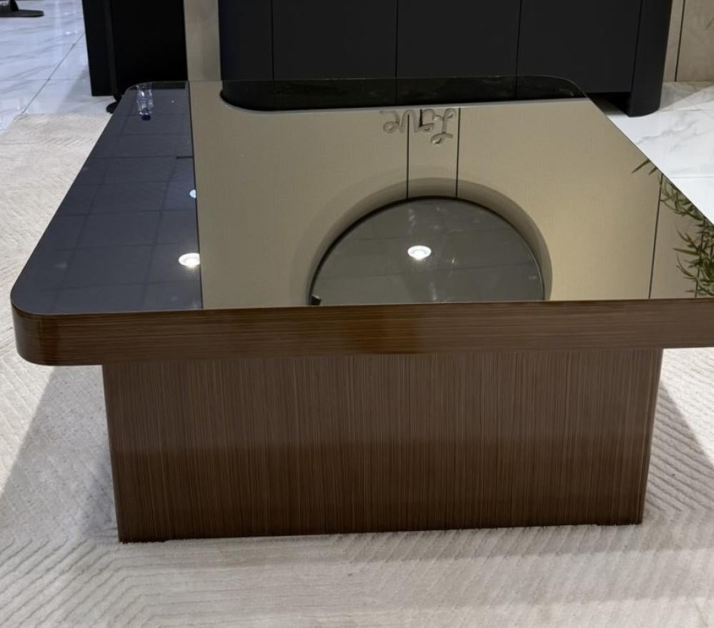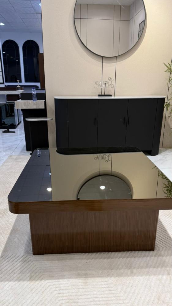 - سطح الطاولة مرايا بني مشطوف عالي الجودة، مقاوم للخدوش و البقع.
