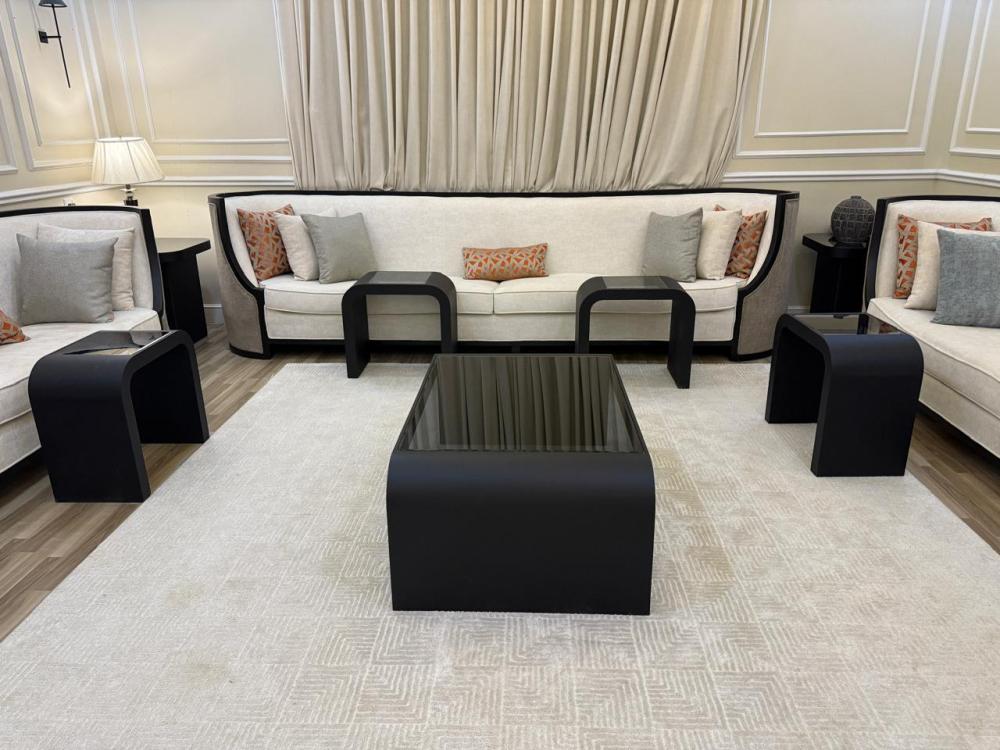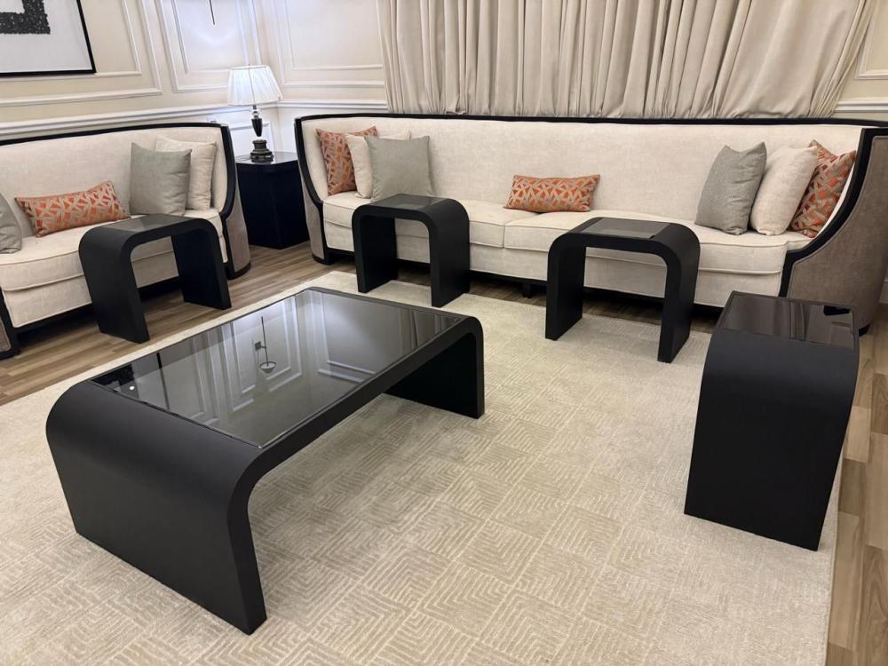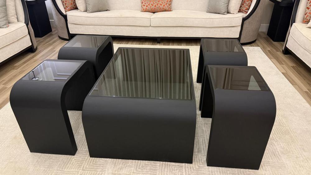 طاولة تقديم خشب mdf تيلندي مع سطح زجاج شفاف اسودالمقاساتالطاوله الكبيره /80*120ارتفاع/45المقاساتالخدمات /35*50ارتفاع/55