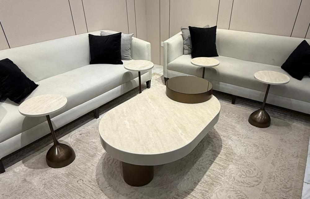 - سطح الطاولة مصنوع من بديل الرخام الصناعي عالي الجودة، مقاوم للخدوش و البقع.