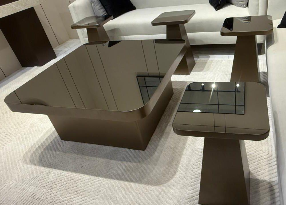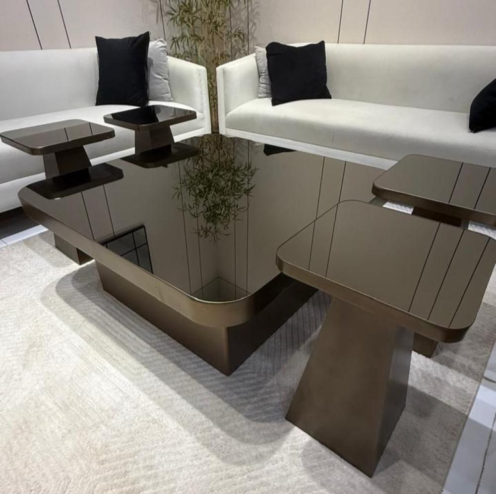 - سطح الطاولة من المرايا البني عالي الجوده (٦) ملي ، مقاوم للخدوش و البقع.